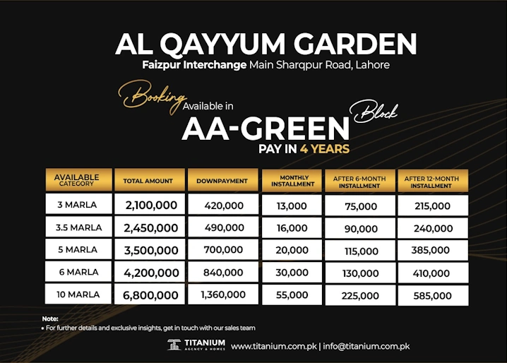 Al Qayyum Garden Lahore is developed by Al Qayyum Developers, led by Imran Chohan and Nasir Ali.