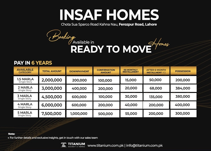Insaf Homes offers a 6-year easy installment plan and provides possession when you pay 40% of the total amount.